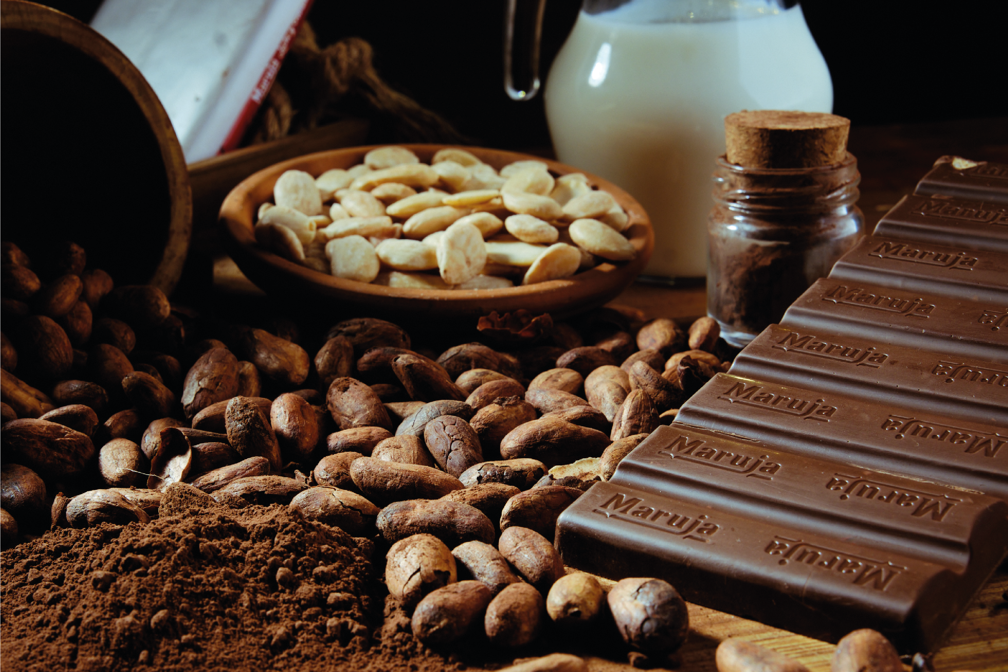 Para el componente de cacao, seleccionamos un polvo de cacao que ha sido procesado cuidadosamente y certificado por normas internacionales, garantizando un perfil de sabor rico y aromático. Este cacao es de origen ético, proveniente de plantaciones que siguen prácticas responsables con el medio ambiente y la comunidad agrícola local.